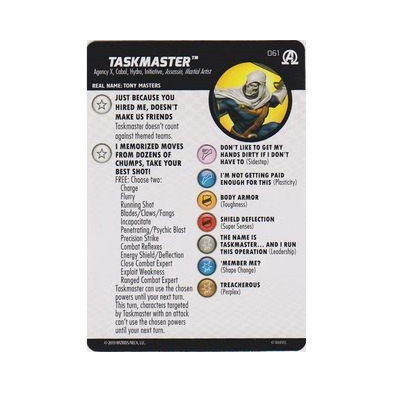 Figura de Heroclix Taskmaster 061. Incluye la carta de personaje en inglés.