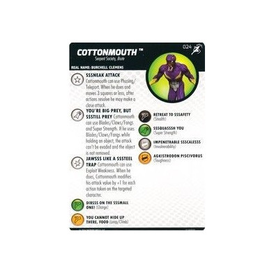 Figura de Heroclix Cottonmouth 024. Incluye la carta de personaje en inglés.