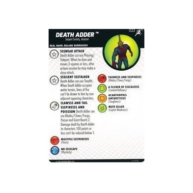 Figura de Heroclix Death Adder 022. Incluye la carta de personaje en inglés.