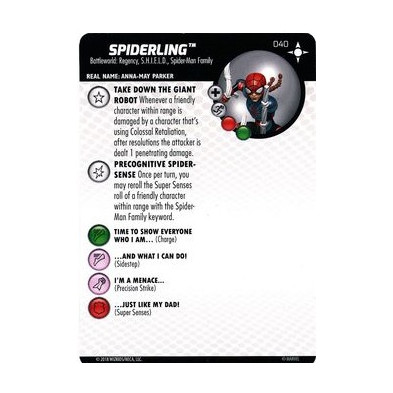 Figura de Heroclix Spiderling 040. Incluye la carta de personaje en inglés.