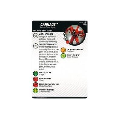 Figura de Heroclix Carnage 044. Incluye la carta de personaje en inglés.