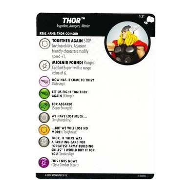 Figura de Heroclix Thor 101. Incluye la carta de personaje en inglés.