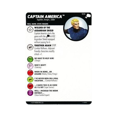 Figura de Heroclix Captain America 104. Incluye la carta de personaje en inglés.