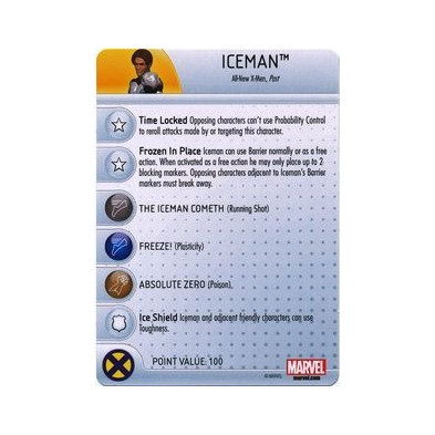 Figura de Heroclix Iceman 036. Incluye la carta de personaje en inglés.