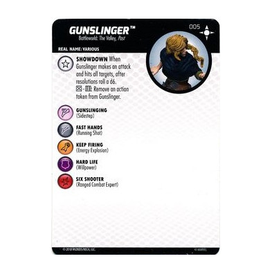 Figura de Heroclix Gunslinger 005. Incluye la carta de personaje en inglés.