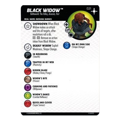 Figura de Heroclix Black Widow 021. Incluye la carta de personaje en inglés.