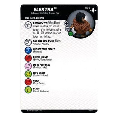 Figura de Heroclix Elektra 036. Incluye la carta de personaje en inglés.