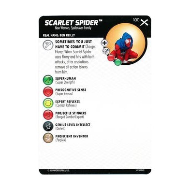 Figura de Heroclix Scarlet Spider 100. Incluye la carta de personaje en inglés.