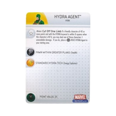 Figura de Heroclix Hydra Agent 003. Incluye la carta de personaje en inglés.