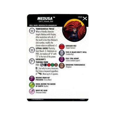 Figura de Heroclix Medusa 060. Incluye la carta de personaje en inglés.
