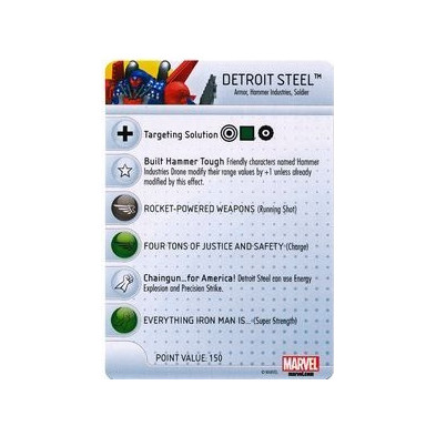 Figura de Heroclix Detroit Steel 020. Incluye la carta de personaje en inglés.