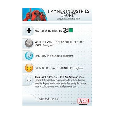 Figura de Heroclix Hammer Industries Drone 005. Incluye la carta de personaje en inglés.