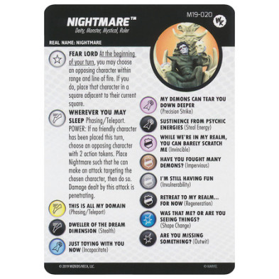 Figura de Heroclix Nightmare M19-020. Incluye la carta de personaje en inglés.