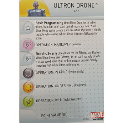 Figura de Heroclix Ultron drone 015. Incluye la carta de personaje en inglés.
