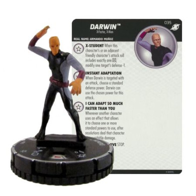 Figura de Heroclix Darwin 035. Incluye la carta de personaje en inglés.