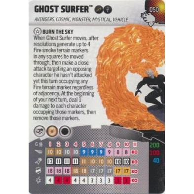 Figura de Heroclix Ghost Surfer 050. Incluye la carta de personaje en inglés.