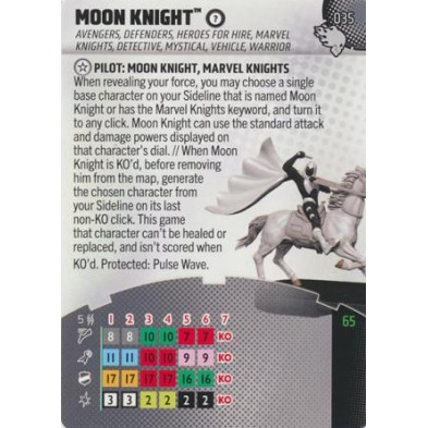 Figura de Heroclix Moon Knight 035. Incluye la carta de personaje en inglés.
