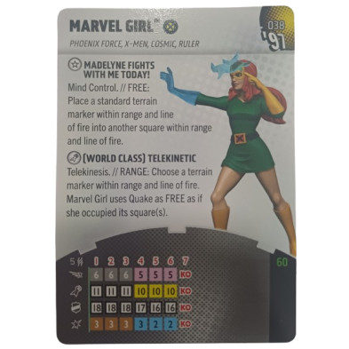 Figura de Heroclix Marvel Girl 038. Incluye carta en inglés.