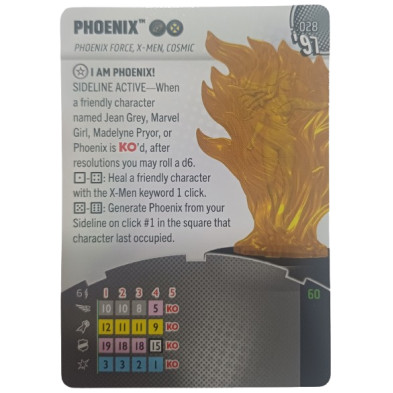 Figura de Heroclix Phoenix 028. Incluye carta en inglés.
