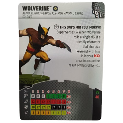 Figura de Heroclix Wolverine 033. Incluye carta en inglés.