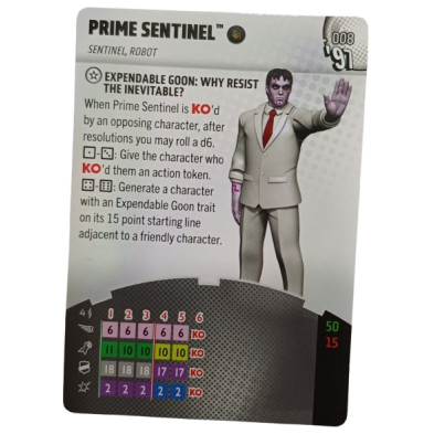 Figura de Heroclix Prime Sentinel 008. Incluye carta en inglés.
