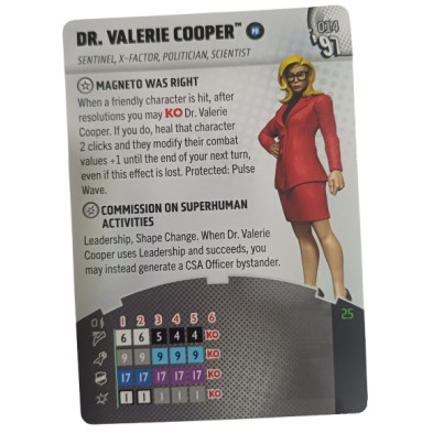 Figura de Heroclix Dr. Valerie Cooper 014. Incluye carta en inglés.