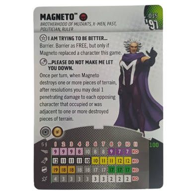 Figura de Heroclix Magneto 015. Incluye carta en inglés.