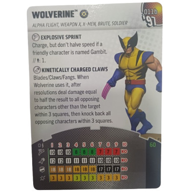 Figura de Heroclix Wolverine 011b. Incluye carta en inglés.