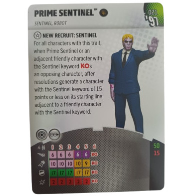 Figura de Heroclix Prime Sentinel 021. Incluye carta en inglés.