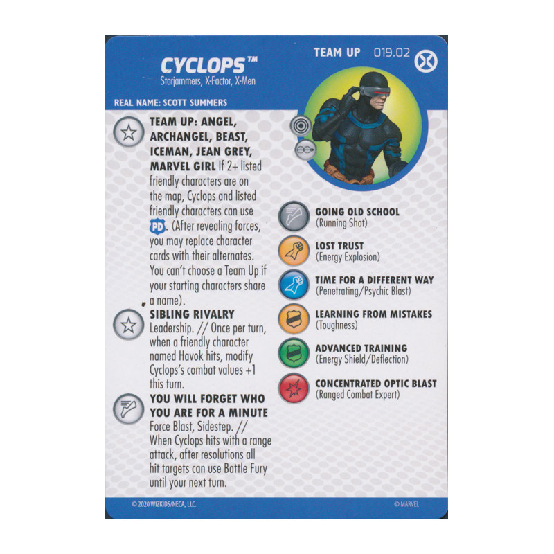 Tarjeta de Heroclix Cyclops Team Up 019.02 Tarjeta de personaje en inglés.