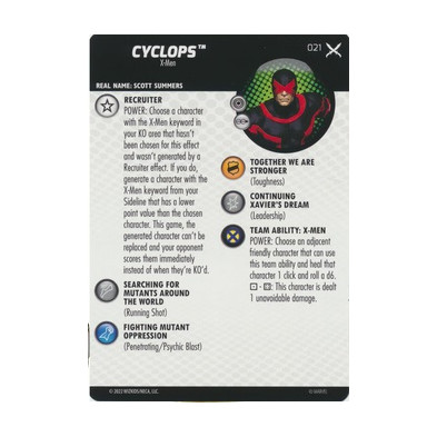 Figura de Heroclix Cyclops 021. Incluye la carta de personaje en inglés.