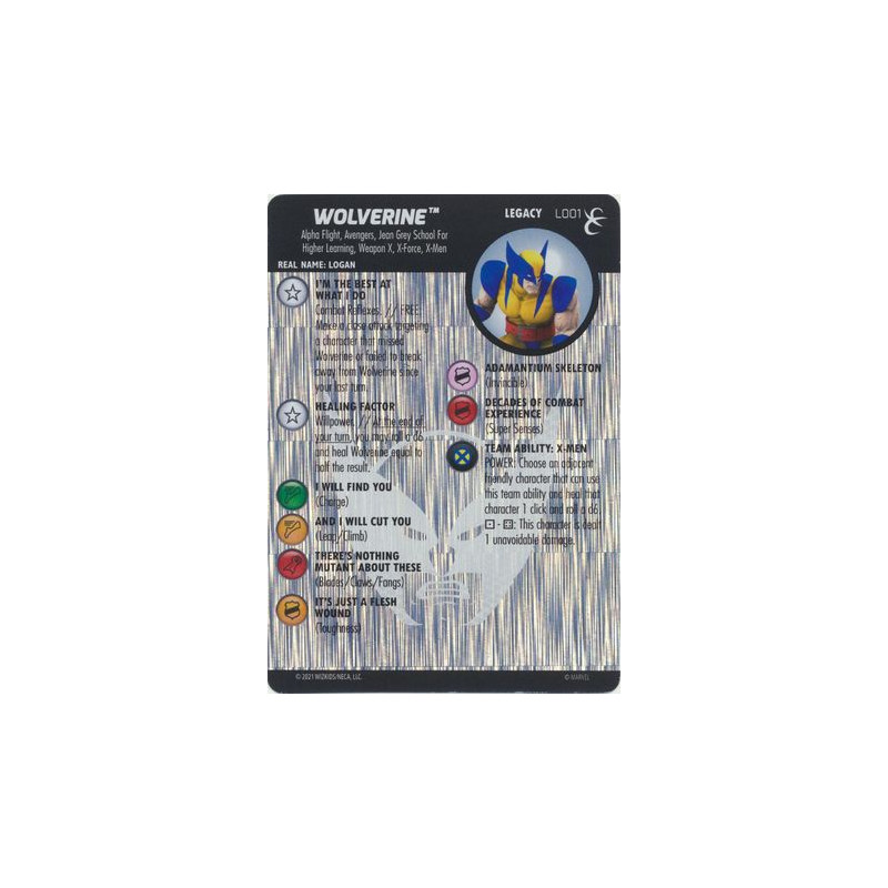 Tarjeta de Heroclix Wolverine Legacy L001 Tarjeta de personaje en inglés.