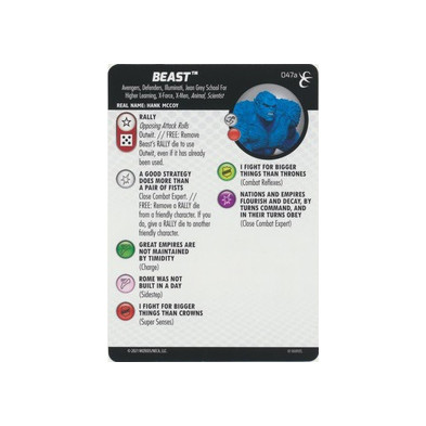 Figura de Heroclix Beast 047a. Incluye la carta de personaje en inglés.